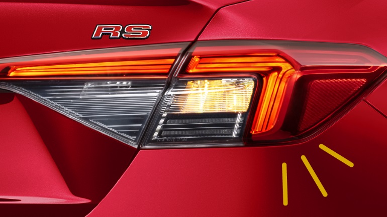 Từ trung tâm tới cản va hai bên, đèn phản quang, hốc thoát gió đều đậm chất thể thao. Cụm đèn hậu của xe ở dạng LED, trên cao là đèn phanh. Ăng ten vây cá mập tăng tính khí động học cho xe. Cánh lướt gió đuôi xe là khác biệt duy nhất so với người anh Civic RS.